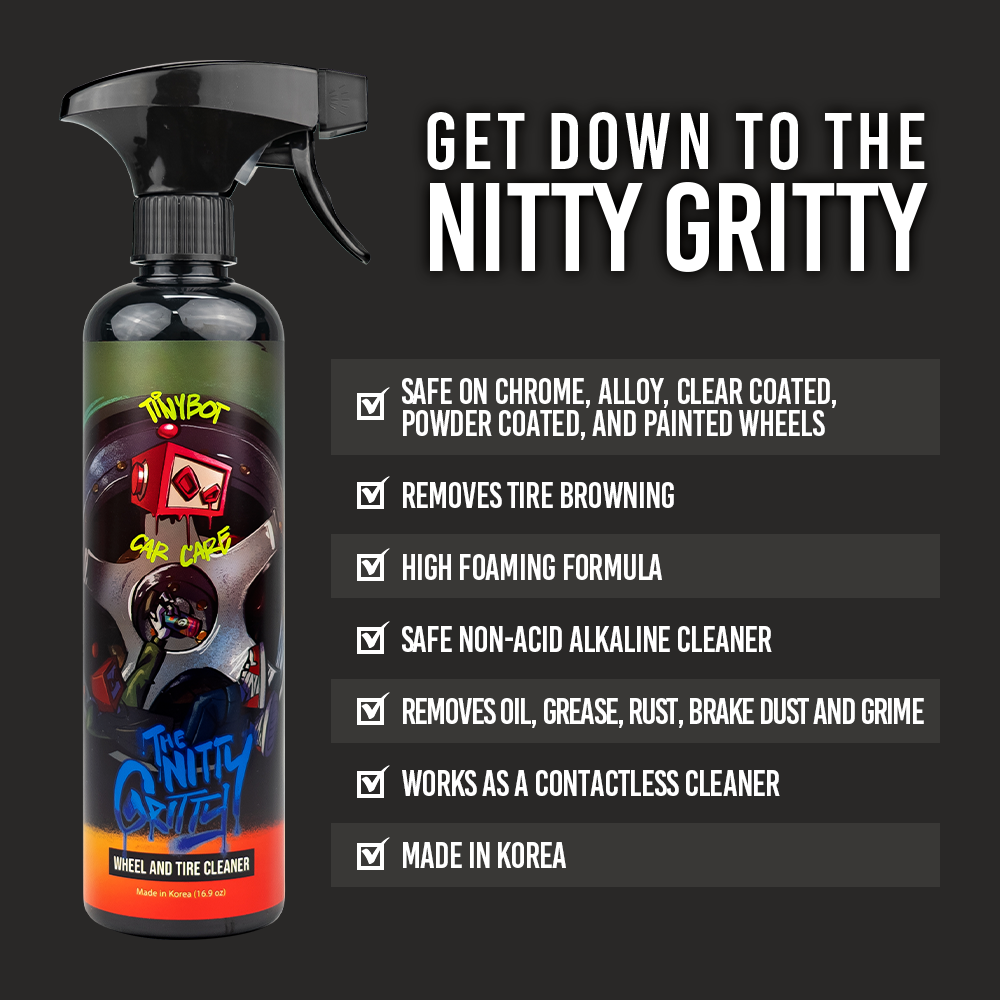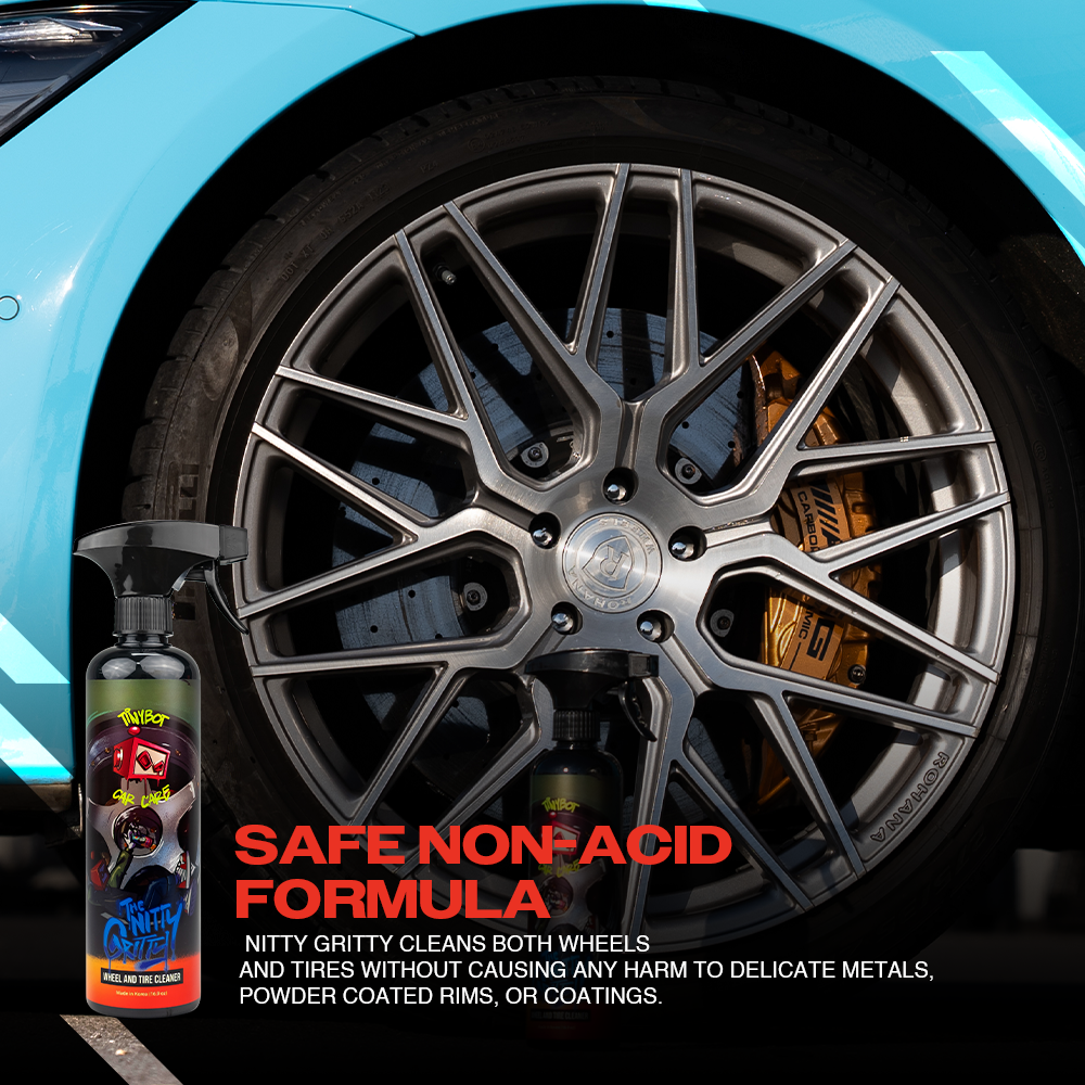 SAFE NON-ACID & COATING SAFE - Nitty Gritty is non-acid and safe to use on all surfaces such as clear & powder & painted coated wheels, coated tires, metals, chrome, alloy, aluminum, plastic trim, carbon fiber, etc.