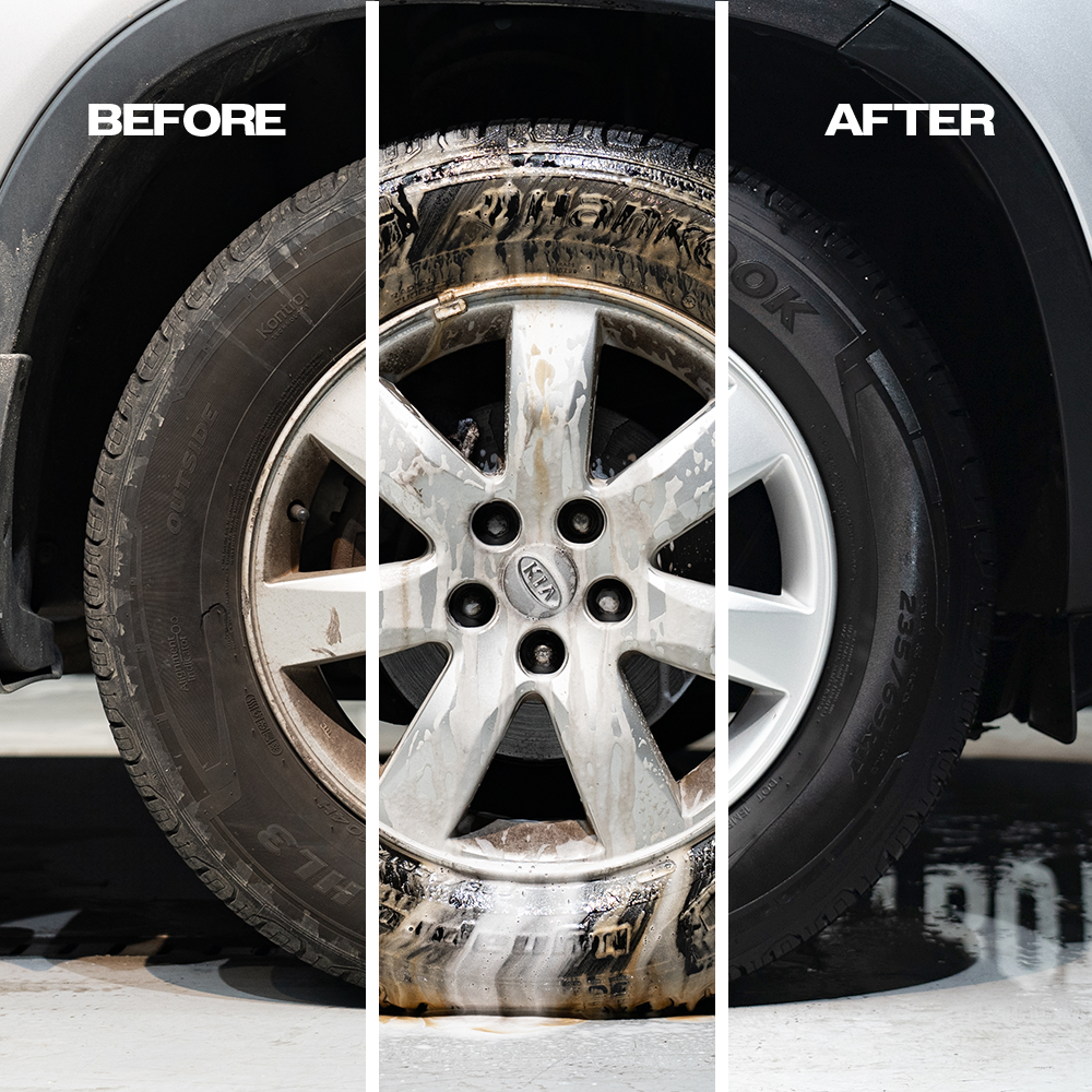 REMOVES TIRE BROWNING - Our cleaner is formulated to break down and remove the oxidation layer of the tire without damaging the rubber, while restoring them to a factory fresh sheen finish with better protection.