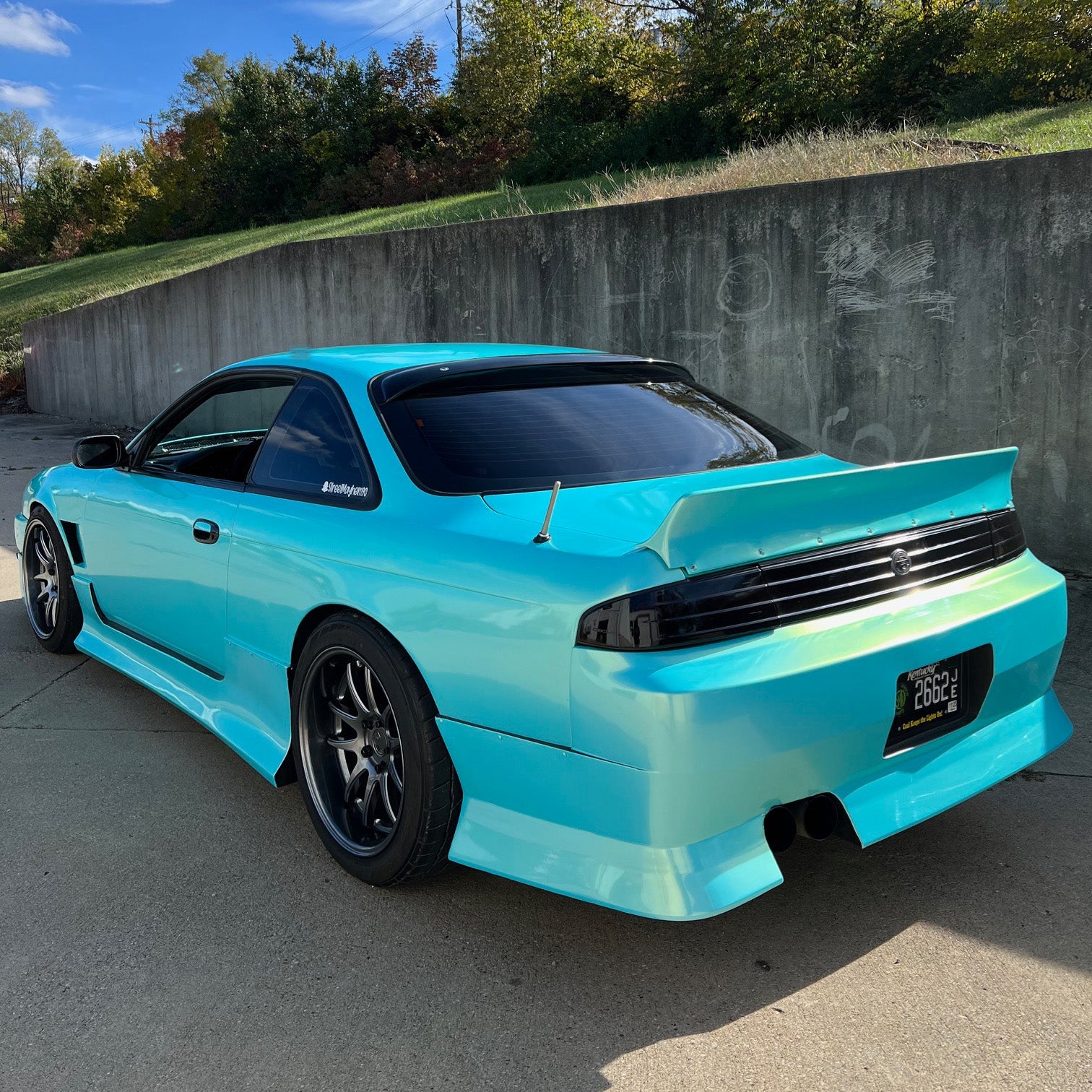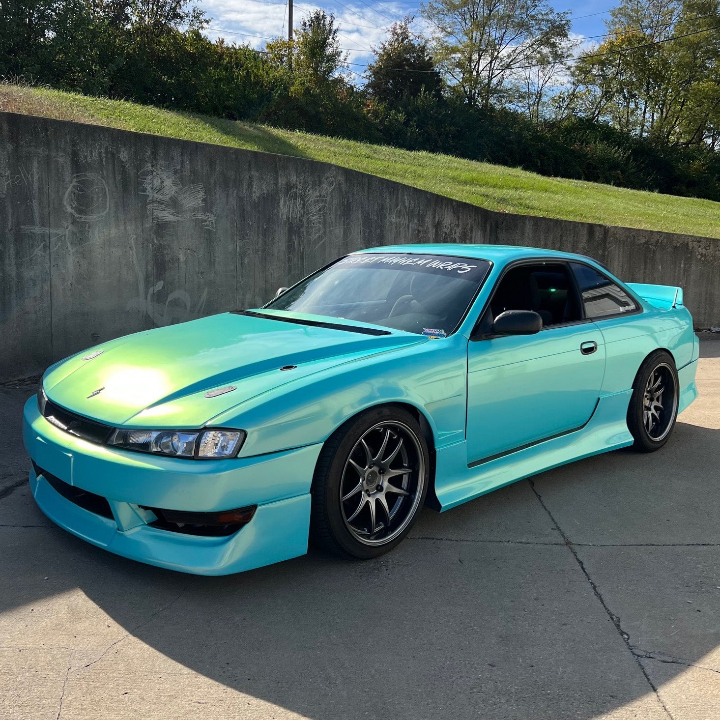 Wrap material was great to work with! Really tacky but also air release worked wonders. No crazy amount of heat needed to mold around curves. Color is sublte in overcast shady days but really pops in proper sunlight!